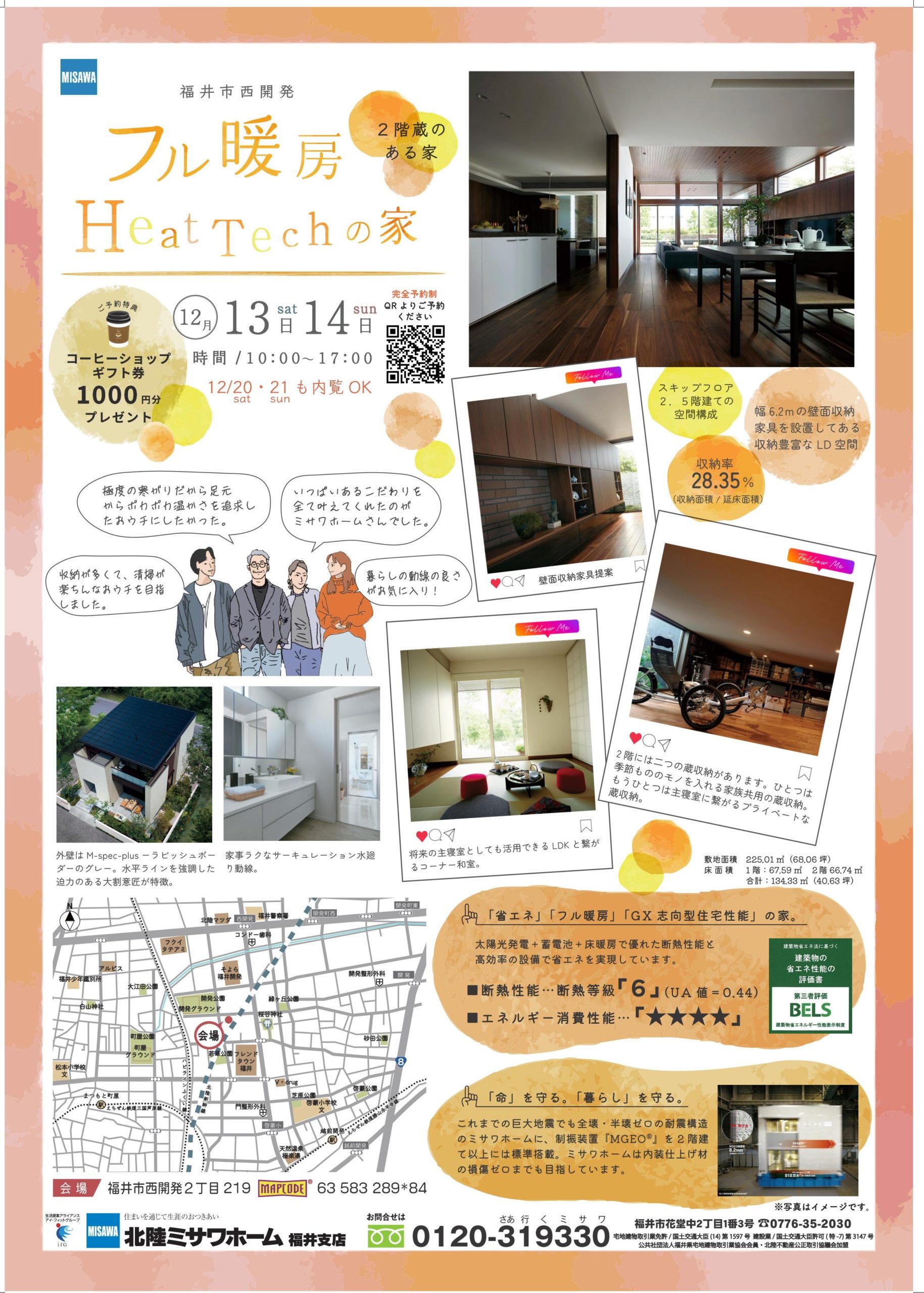 北陸ミサワホーム > 新着情報バックナンバー > 【福井支店:12/13・14】福井市西開発にて 真冬でもあったか Heat Techの家 完成内覧会